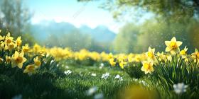 Golden Hour Daffodils. A field of blooming daffodils bathed in warm sunlight.