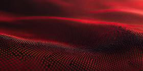 Dynamic Red Particle Wave. A mesmerizing abstract background composed of swirling red particles creating a dynamic and energetic wave pattern.