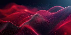 Dynamic Red Particle Wave. A mesmerizing abstract background composed of swirling red particles creating a dynamic and energetic wave pattern.
