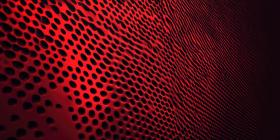 Dynamic Red Particle Wave. A mesmerizing abstract background composed of swirling red particles creating a dynamic and energetic wave pattern.