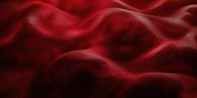 Dynamic Red Particle Wave. A mesmerizing abstract background composed of swirling red particles creating a dynamic and energetic wave pattern.