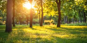 Sunlit Path Through a Lush Green Forest