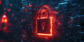 Cybersecurity Guardian: Glowing Lock in Digital Maze