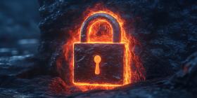 Cybersecurity Guardian: Glowing Lock in Digital Maze