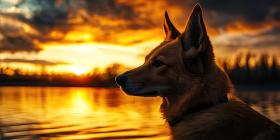 German Shepherd Silhouetted Against a Vibrant Sunset