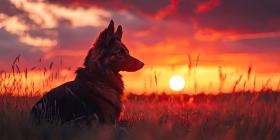 German Shepherd Silhouetted Against a Vibrant Sunset