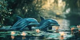 Enchanting Duo: Dolphins frolicking in a Dreamy Lagoon