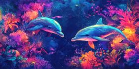Enchanting Duo: Dolphins frolicking in a Dreamy Lagoon