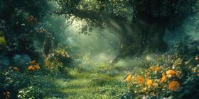 Enchanted Woodland Path Beckons with Sunbeams Filtering Through the Trees