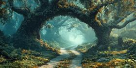Enchanted Woodland Path Beckons with Sunbeams Filtering Through the Trees