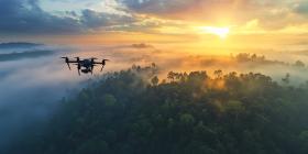 Drone Soaring Above a Misty Rainforest, Capturing the Wilderness from Above.