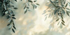 Serene Olive Branches Frame a Textured Canvas, Evoking Tranquility.