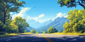 Scenic Road Winds Through a Vast Landscape, Leading Towards Majestic Mountains.