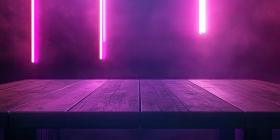 Neon Lights Illuminate a Dark Wooden Stage, Setting the Scene for a Vibrant Performance.