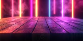 Neon Lights Illuminate a Dark Wooden Stage, Setting the Scene for a Vibrant Performance.