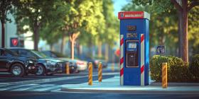 Modern Electric Vehicle Charging Station with Cars Plugged In.