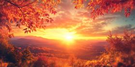 Serene Autumn Sunset Paints the Sky with Warm Colors, Reflecting on Tranquil Waters.