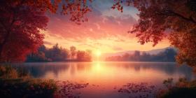 Serene Autumn Sunset Paints the Sky with Warm Colors, Reflecting on Tranquil Waters.
