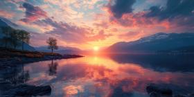 Celestial Panorama: Starry Sky Reflected in a Tranquil Lake at Dusk.