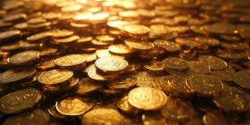 A Glittering Treasure Trove: A Mountain of Golden Coins Shimmers in the Light.