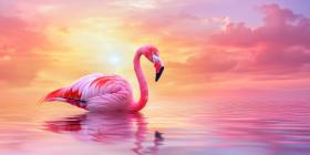 Flamingo Elegance: A Vibrant Pink Bird Stands Gracefully in a Serene Lagoon.