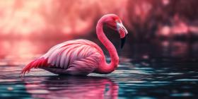 Flamingo Elegance: A Vibrant Pink Bird Stands Gracefully in a Serene Lagoon.