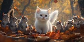 Curious Kitten Leads a Swarm of Squirrels on a Woodland Adventure