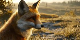 A Red Fox Watches the Sunrise, Its Fur Gleaming in the Morning Light.