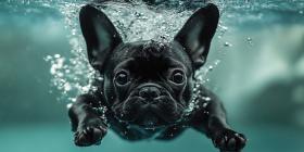 Underwater Adventure: A Black French Bulldog Swims with Determination and Grace.