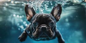 Underwater Adventure: A Black French Bulldog Swims with Determination and Grace.