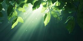 Golden Sunlight Beams Pierce Through a Verdant Canopy, Illuminating the Forest Floor