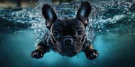 Underwater Adventure: A Black French Bulldog Swims with Determination and Grace.