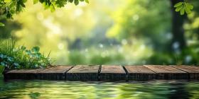 Tranquil Pondside View: Wooden Dock Overlooking a Serene Waterscape
