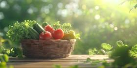 Fresh Harvest Bounty: A Basket Overflowing with Colorful Vegetables