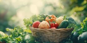 Fresh Harvest Bounty: A Basket Overflowing with Colorful Vegetables