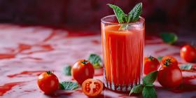 Refreshing Tomato Juice with Mint Garnish, Ready to Quench Your Thirst