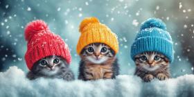 Winter Wonderland Kittens: Three Adorable Felines in Colorful Hats.