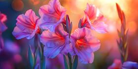 A Field of Dreams: A Vibrant Garden of Gladiolus Blossoms at Sunset