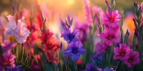 A Field of Dreams: A Vibrant Garden of Gladiolus Blossoms at Sunset