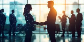 Global Connectivity: Network of Human Figures Connected by Lines Around a Digital Globe