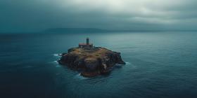 Guardian of the Coast: A Lone Lighthouse Stands Tall Against a Misty Sea