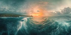 Guardian of the Coast: A Lone Lighthouse Stands Tall Against a Misty Sea