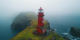 Guardian of the Coast: A Lone Lighthouse Stands Tall Against a Misty Sea