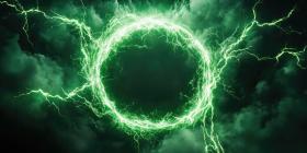 Electric Vortex: A Ring of Green Lightning Crackles Against a Stormy Sky