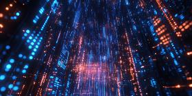 Digital Rain: A Cascade of Blue Light Trails Across the Cosmic Canvas