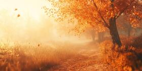 Golden Autumn Path: Sunlight Filters Through Trees, Leaves Dance in the Breeze