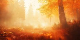 Golden Autumn Path: Sunlight Filters Through Trees, Leaves Dance in the Breeze