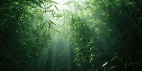 Sunlight Dappled Path Through a Lush and Serene Bamboo Forest