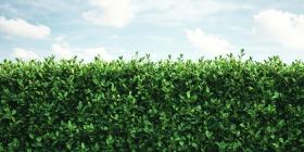 Lush Green Hedge Against a Blue Sky with Puffy Clouds