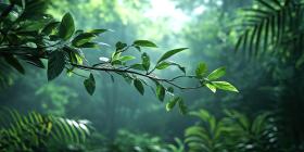 Sunlight Filtering Through Dew-Kissed Leaves in a Lush Green Forest